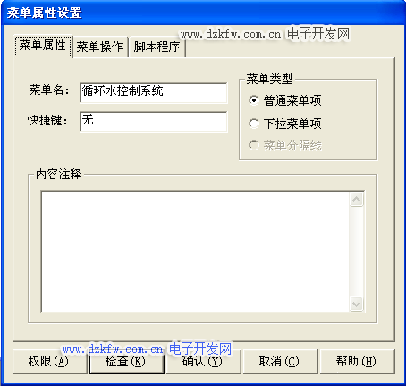 圖 7-11“循環(huán)水控制系統(tǒng)”的菜單屬性設(shè)置