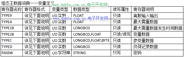 1)除PASSw寄存器外,其余組態王寄存器的定義格式為: