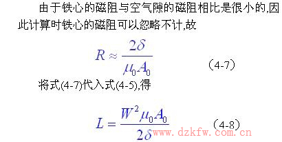 如果空氣隙δ較小,而且不考慮磁路的損失,則總磁阻為