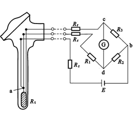 熱電阻溫度計主要由熱電阻傳感器、電阻測量橋路、顯示儀表及連接導(dǎo)線所組成。為了消除導(dǎo)線電阻對溫度測量的影響,一般為三線制接法。