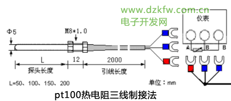 一般顯示儀表提供三線接法,PT100一端出一顆線,另一端出兩顆線,都接儀表,儀表內部通過橋抵消導線電阻。