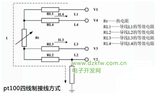 從熱電阻的測溫原理可知,被測溫度的變化是直接通過熱電阻阻值的變化來測量的,因此,熱電阻體的引出線等各種導線電阻的變化會給溫度測量帶來影響。為消除引線電阻的影響同般采用三線制或四線制。