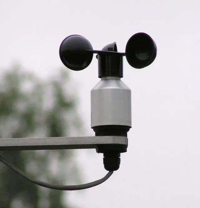 風杯式風速傳感器,是一種十分常見的風速傳感器,最早由英國魯賓孫發明。感應部分是由三個或四個圓錐形或半球形的空杯組成。空心杯殼固定在互成120°的三叉星形支架上或互成90°的十字形支架上,杯的凹面順著一個方向排列,整個橫臂架則固定在一根垂直的旋轉軸上。