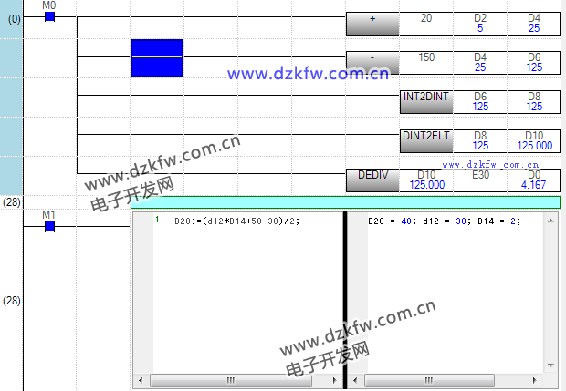 7、FX5U編程對LAD的算法加強,因為可以內嵌ST程序,LD的算法編程進行了很大的簡化(傳統編程需要考慮小數且繁瑣,內嵌ST編程簡便且程序可讀性增強)。