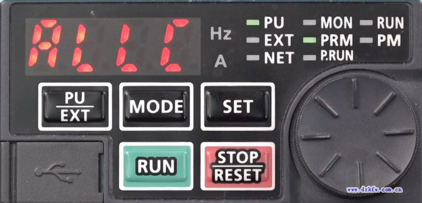 1、變頻器參數(shù)設(shè)置:變頻器恢復(fù)出廠設(shè)置:ALLC設(shè)置為1。