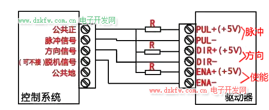 PUL-: 步進脈沖信號輸入負端或正向步進脈沖信號輸入負端,