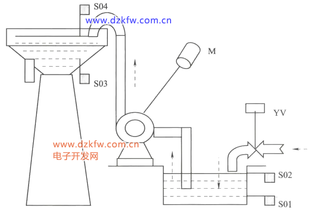 水塔水位控制與水池水位控制工作原理相似,讀者可自行參照分析。