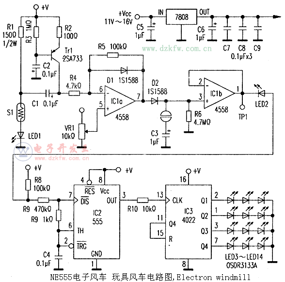 關鍵字:玩具風車電路圖,NE555,555電路