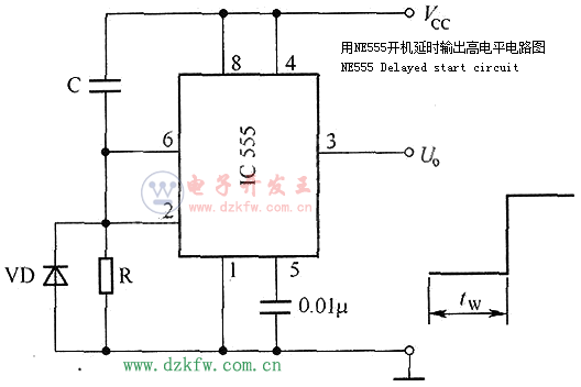 用NE555開機(jī)延時(shí)輸出高電平電路,NE555 Delayed start circuit