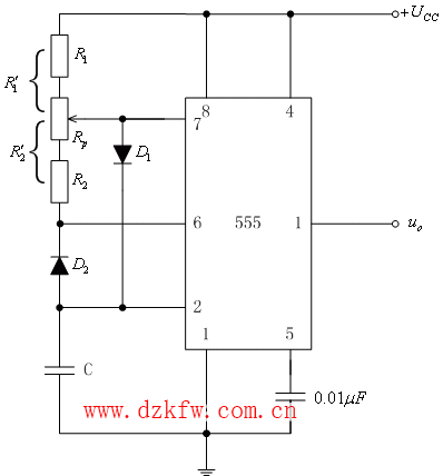 兩只二極管將電容C的沖放電電路分開(kāi),并接一電位器