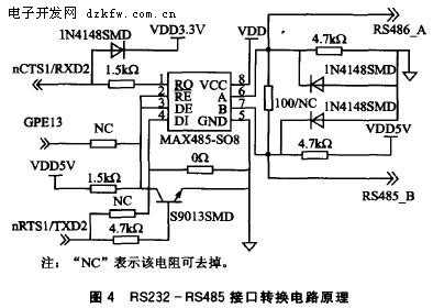 圖4中RS485的數據流方向由GPE13口的電平進行控制。
