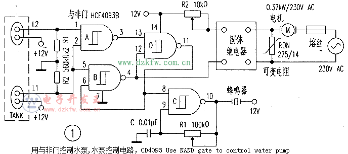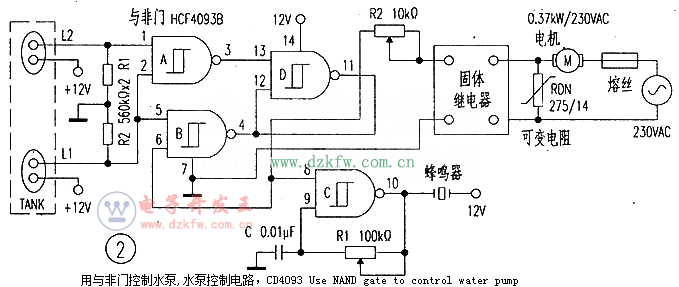 關(guān)鍵字:CD4093,水泵控制電路,Use NAND gate to control water pump