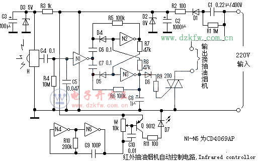 紅外抽油煙機自動控制電路,Infrared cooker hood automatic control circuit