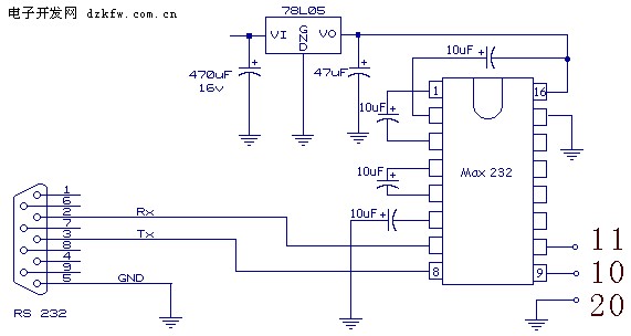 ;采用MAX232專用芯片作RS232/TTL電平轉換.