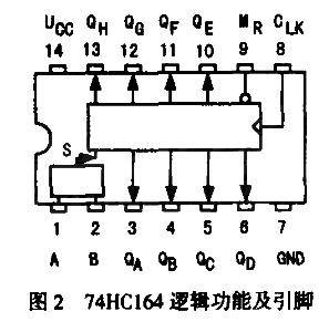 74LS164如右圖所示,其引腳功能如下: