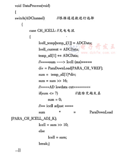 AD數據處理模塊程序代碼,以充電電流數據濾波處理為例: