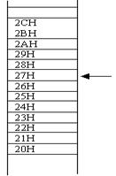 在單片機中,我們也能在RAM中構(gòu)造這樣一個區(qū)域,用來存放數(shù)據(jù),這個區(qū)域存放數(shù)據(jù)的規(guī)則就是“先進后出,后進先出”,我們稱之為“堆!。為什么需要這樣來存放數(shù)據(jù)呢?存儲器本身不是能按地址來存放數(shù)據(jù)嗎?對,知道了地址的確就能知道里面的內(nèi)容,但如果我們需要存放的是一批數(shù)據(jù),每一個數(shù)據(jù)都需要知道地址那不是麻煩嗎?如果我們讓數(shù)據(jù)一個接一個地放置,那么我們只要知道第一個數(shù)據(jù)所在地址單元就能了(看圖2)如果第一個數(shù)據(jù)在27H,那么第二、三個就在28H、29H了。所以利用堆棧這種辦法來放數(shù)據(jù)能簡化操作