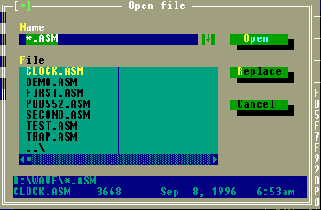 - 按File->Open,出現(xiàn)對(duì)話框后,在Name處輸入一個(gè)文件名(見圖2),如果是下面列表中已存在的,則打開這個(gè)文件,如果不存在這個(gè)文件,則新建一個(gè)文件(見圖3)