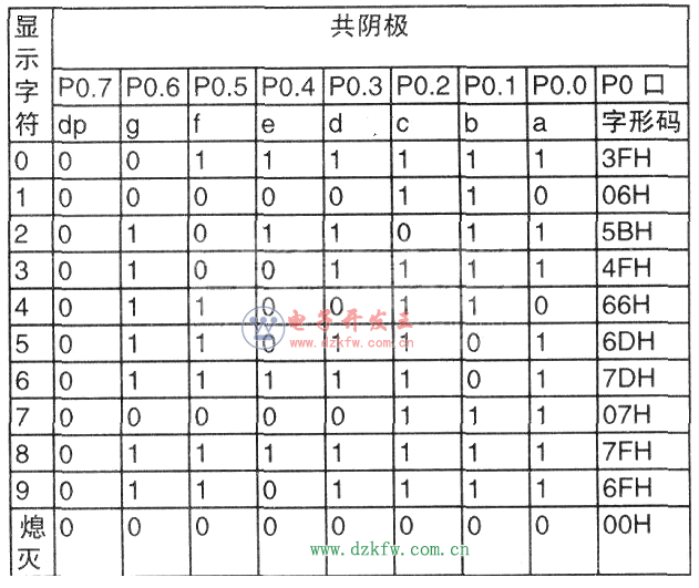 本電路采用的是共陰極數碼管,接到單片機的PO口,現在只要向PO口輸出相應的字型編碼就可以顯示相應的數字。