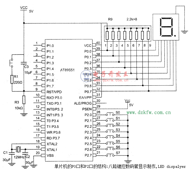 單片機的PO口和P2口的結構:八路鍵控數碼管顯示制作,LED dispalyer