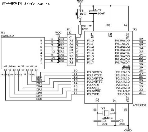 8X8點陣LED工作原理說明 :8X8點陣共需要64個發(fā)光二極管組成,且每個發(fā)光二極管是放置在行線和列線的交叉點上,當對應(yīng)的某一列置1電平,某一行置0電平,則相應(yīng)的二極管就亮;因此要實現(xiàn)一根柱形的亮法,如圖49所示,對應(yīng)的一列為一根豎柱,或者對應(yīng)的一行為一根橫柱,因此實現(xiàn)柱的亮的方法如下所述: