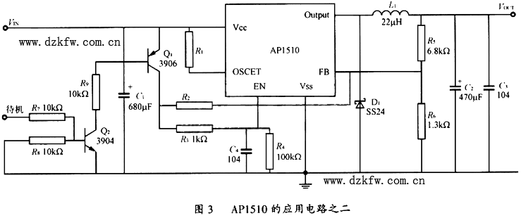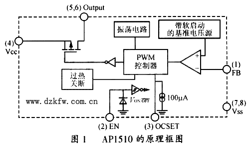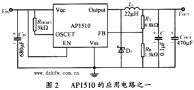 降壓型PWM控制器AP1510芯片內含基準電壓源、振蕩電路、誤差放大器、內部PMOS開關管等電路,只需外加電感、電容、二極管等少量元器件,便可組成小體積、高效率的降壓型開關穩壓電源。