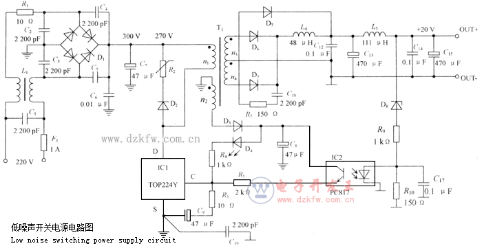 低噪聲開關電源電路圖 Low noise switching power supply circuit