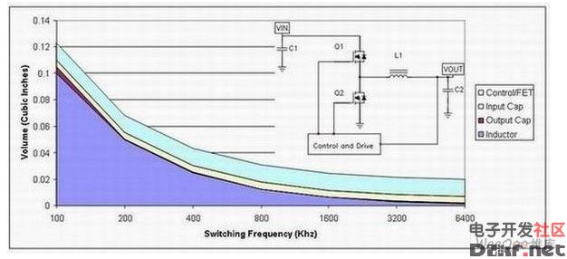 我們以濾波器組件作為開始。這些組件占據了電源體積的大部分,同時濾波器的尺寸同工作頻率成反比關系。另一方面,每一次開關轉換都會伴有能量損耗;工作頻率越高,開關損耗就越高,同時效率也就越低。其次,較高的頻率運行通常意味著可以使用較小的組件值。因此,更高頻率運行能夠帶來極大的成本節約。