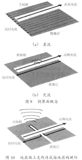 電磁理論中的鏡像面概念對設(shè)計者掌握開關(guān)電源的PCB排版會有很大的幫助。圖9是鏡像面的基本概念。