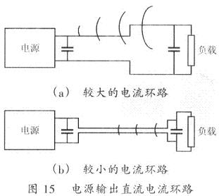 許多開關(guān)電源的負(fù)載遠(yuǎn)離電源的輸出端口。為了避免輸出走線受電源自身或周邊電子器件所產(chǎn)生的電磁下擾,輸出電源走線必須像圖l5(b)那樣靠得很近,使輸出電流環(huán)路的面積盡可能減小。
