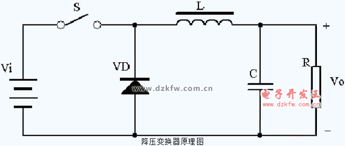 降壓變換器原理圖如圖1所示,當開關閉合時,加在電感兩端的電壓為(Vi-Vo),此時電感由電壓(Vi-Vo)勵磁,電感增加的磁通為:(Vi-Vo)*Ton。