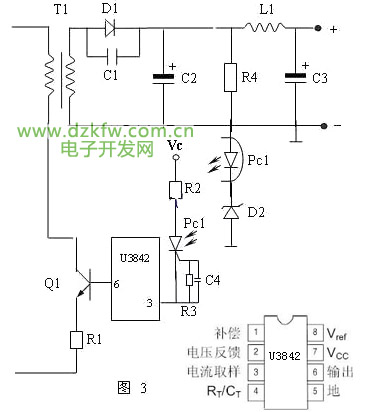 uc3842開關電源電路圖_開關電源各功能電路_電壓反饋環、短路保護
