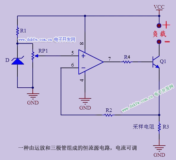 這是一種由運放和三極管組成的恒流源電路,電流可調,簡單又實用。