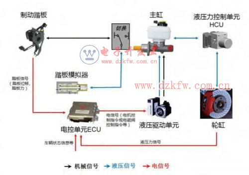 液壓式制動(dòng)傳動(dòng)裝置由制動(dòng)踏板、推桿、制動(dòng)主缸、儲(chǔ)油罐、制動(dòng)輪缸、油管、制動(dòng)開(kāi)關(guān)、指示燈、比例閥等組成。