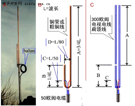 J型天線因制作簡單,取材容易,一直受調(diào)頻發(fā)射機(jī)愛好者青睞,制作時(shí)可以選用1 mm左右的空調(diào)銅管,按照計(jì)算的尺寸制作,無需專業(yè)工具制作就能獲很好的效果。如找不到銅管,亦可以用2.5平方的銅線制作。