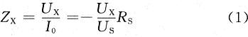 為了提高信號源精度,正弦信號源U0采用直接數(shù)字頻率合成信號源(DDS)。R0為信號源內(nèi)阻,RS是標(biāo)準(zhǔn)電阻,Zx為被測阻抗,A為高輸入阻抗、高增益放大器,主要完成電流一電壓變換功能。測量時,開關(guān)S通過程控置于Ux或US端。由圖1有:UX=IOZX,US=-IORS,被測阻抗ZX為: