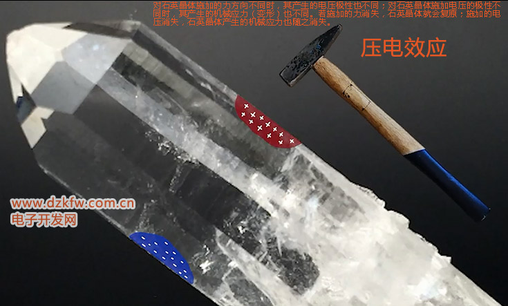 根據(jù)圖1-2所示,對石英晶體施加的力方向不同時(shí),其產(chǎn)生的電壓極性也不同;對石英晶體施加電壓的極性不同時(shí),其產(chǎn)生的機(jī)械應(yīng)力(變形)也不同。另外,若施加的力消失,石英晶體就會復(fù)原;施加的電壓消失,石英晶體產(chǎn)生的機(jī)械應(yīng)力也隨之消失。