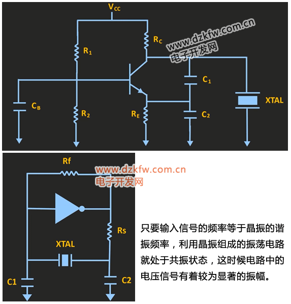 顯然,只要輸入信號的頻率等于晶振的諧振頻率,利用晶振組成的振蕩電路就處于共振狀態(tài),這時(shí)候電路中的電壓信號有著較為顯著的振幅。二當(dāng)輸入信號為其他頻率時(shí),即電路處于非共振狀態(tài)時(shí),電路中的電壓信號比較微弱,在一定條件下可忽略不計(jì)。