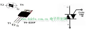 電極和好壞判別:用萬用表R×1擋或R×10擋對換表筆測T2、T1或T2、G極正、反阻值指針均不動;用萬用表R×1擋或R×10擋對換表筆測T1和G極正、反向阻值均為幾十至幾百歐,其中必有一次阻值稍大,則稍大的一次紅筆接的為G極,黑筆所接為T1極,余下是T2極。符 號: