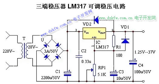 LM317是可調節三端正電壓穩壓器,在輸出電壓范圍1.2伏到37伏時能夠提供超過1.5安的電流。R2/R1的比值范圍只能是0—28.6;317系列穩壓塊的型號很多:例如LM317HVH、W317L 、LM317HVA、LM317HVK等 。