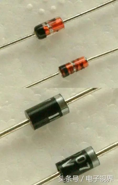 晶體二極管按作用可分為:整流二極管(如1N4004)、隔離二極管(如1N4148)、肖特基二極管(如BAT85)、發光二極管、穩壓二極管等。