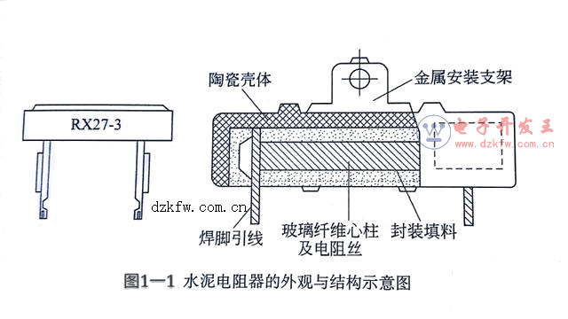 水泥電阻是將鎳鉻電阻絲或康銅電阻絲,繞在無(wú)堿性耐熱陶瓷片上,中間用玻璃纖維填充,外面用陶瓷殼體封裝而制成。水泥電阻器其實(shí)不是采用水泥,而是耐溫的耐火泥或者說(shuō)是耐溫的陶瓷。