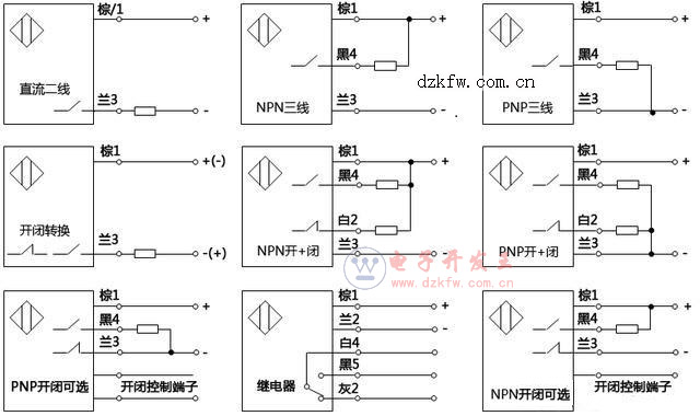 下圖為接近開(kāi)關(guān)的種類,直流交流,NPN三線,PNP三線,
