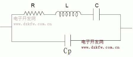 R是ESR串聯(lián)等效阻抗,L和C分別是等效電感和電容,Cp為寄生電容。