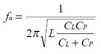 當(dāng)晶振在并聯(lián)諧振狀態(tài)下工作時,線路表現(xiàn)為純感性。在這種模式下,工作頻率由晶振的負(fù)載決定。對于并聯(lián)諧振狀態(tài)的晶振,晶振制造商應(yīng)該指定負(fù)載電容CL。在這種模式下,諧振頻率: