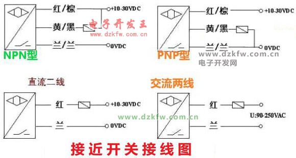 我們知道接近開關類型有NPN型和PNP型兩種,對于PNP型的接近開關它的輸出信號是高電平有效,也就是說當有檢測物體靠近它時,其信號輸出端就會有輸出一個高電平;當檢測物體遠離接近開關時,它的信號輸出端就會恢復到低電平。而對于NPN型接近開關它的輸出信號是低電平有效,因此我們就知道,我們平時所用的接近開關是屬于開關型的,也就是說接近開關在工作時要么輸出的是高電平,要么輸出的是低電平。