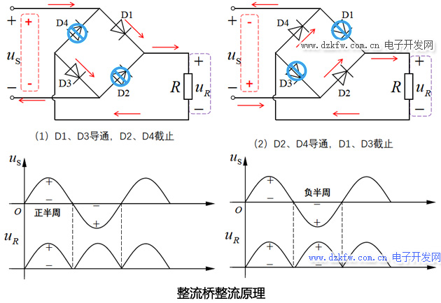 整流橋堆一般用在全波整流電路中,它又分為全橋與半橋。
