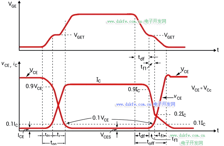 下圖顯示了IGBT 的典型開關特性。