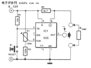 在555內部,③腳與地之間是一個分壓器,它為兩個比較器的一個輸入端提供基準電壓。這兩個比較器的另一個輸入端則分別通過②腳和⑥腳接到復位按鈕S1 和電位器P1。比較器的輸出端則分別控制內部雙穩觸發器的置位和復位輸入端。雙穩觸發器的輸出端通 過③腳向外部電路提供輸出信號。