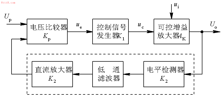 AGC電路是通過對可控增益放大器增益的控制來實現(xiàn)對輸出信號振幅變化的限制,而增益變化又取決于輸入信號振幅的變化,所以要求